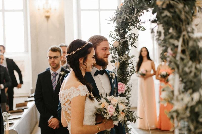 This German wedding of Natalie and Julian, which took place at the prestigious Hotel Kloster Nimbschen in Germany, is full of DIY work done by the couple entirely on their own and tons of romance.