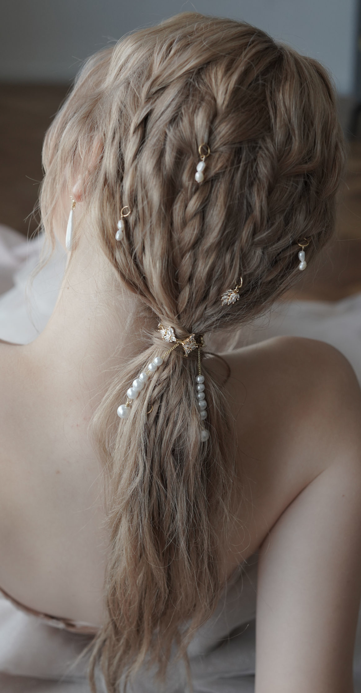 לתסרוקת קוקו מומלץ לשדרג עם סט של 8 חובקים פניני ועלי קריסטל שמופיע בתמונה יחד עם החובקן הגדול