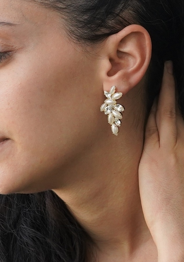 עגילי טוניק בשילוב עם פנינים, מחפשת עגיל סברובסקי בשילוב פנינים עם נוכחות לכלה או לכל מאורע אחר? העגילים מצופים בזהב 18 קראט/ כסף / רוז גולד – ללא ניקל, במיוחד לבנות שסובלות מאלרגיה ורגישות באזניים. טוניק- עגיל עם נוכחות לכלה שישדרג לך את המראה ביום החתונה! עגילי טוניק הם עגילים המשובצים באבני סברובסקי ובפנינים אקריליות אורך עגיל: כ 4 ס”מ