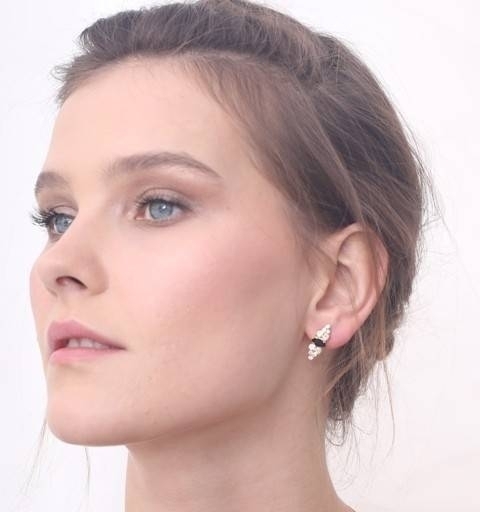 Black Isabel earrings, the earrings are plated in 24ct gold / silver – without nickel, especially for girls who suffer from allergies and sensitivity in the ears. The earrings are set with black Swarovski stones and Czech crystal. Earring length: 2 cm