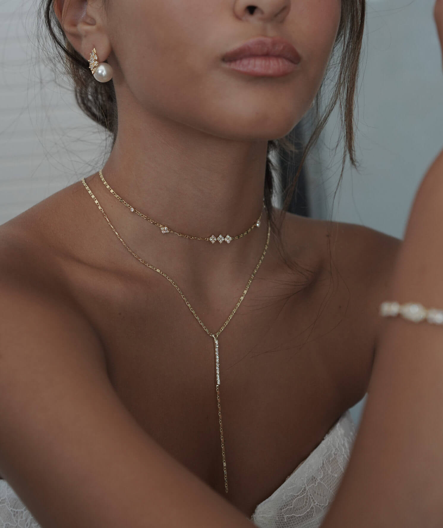 Delicate tie necklace is a stunning bridal necklace.