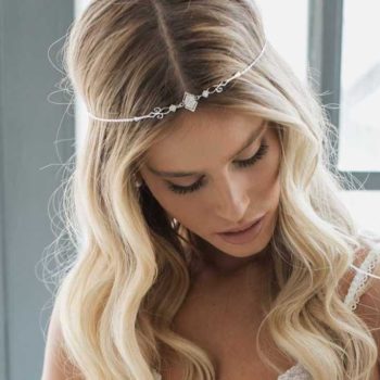 This headband comes with an chain extension, so it fits any head size. Closes with a clasp, like a chain.